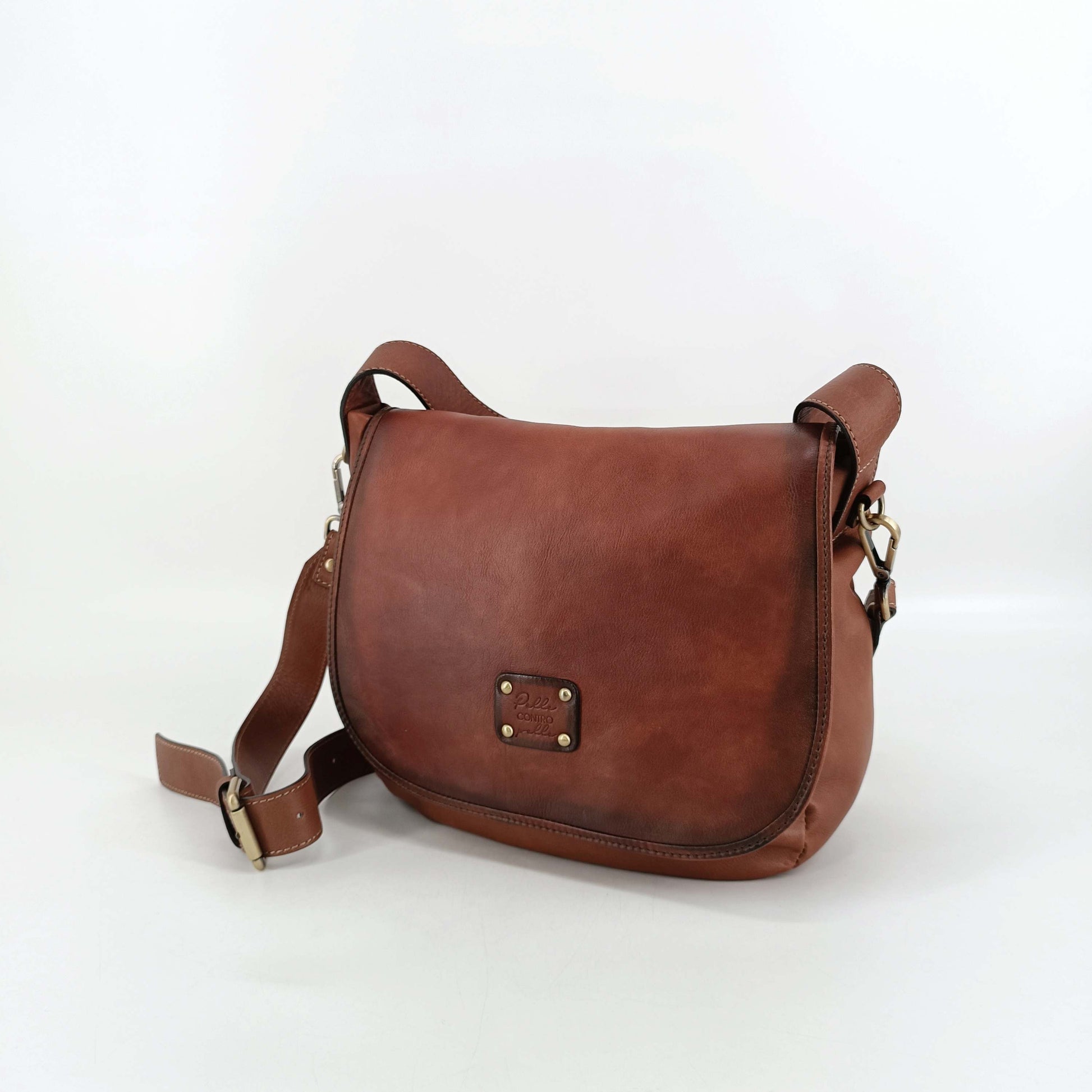 Creata con pelle di vacchetta tamponata a mano che dona un effetto vintage.