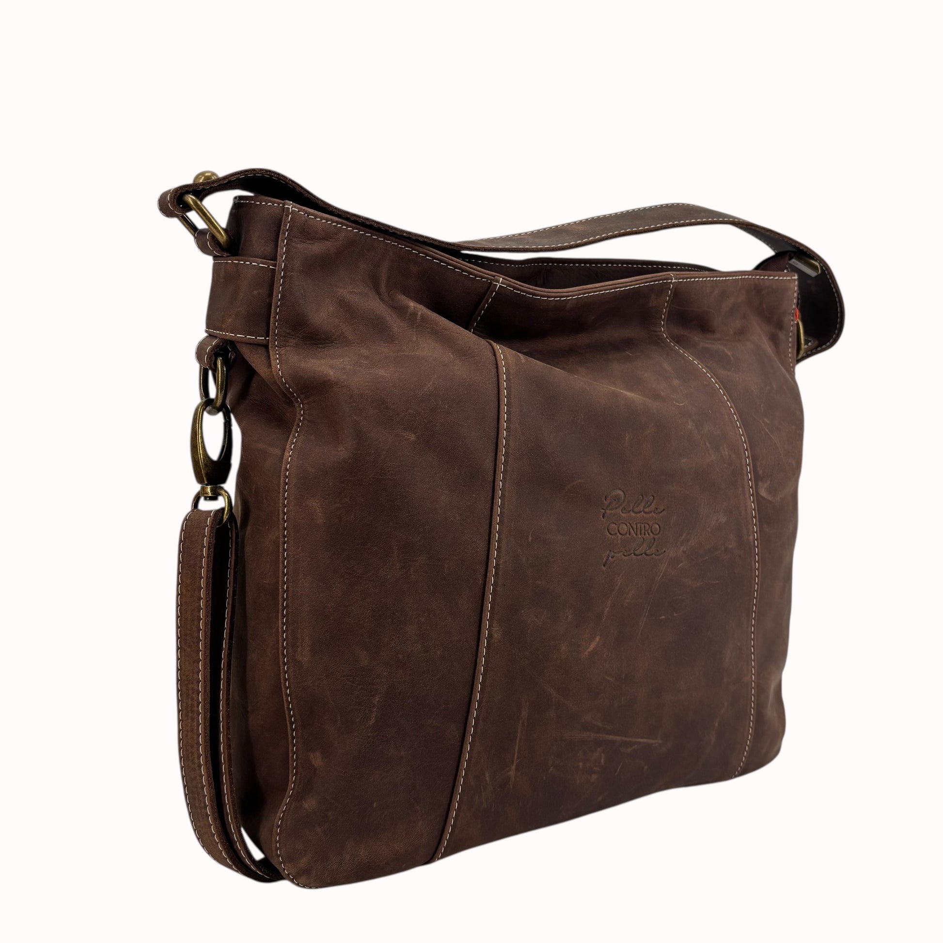 Realizzata in vera pelle ingrassata di alta qualità, questa borsa unisce artigianalità, carattere e funzionalità.
