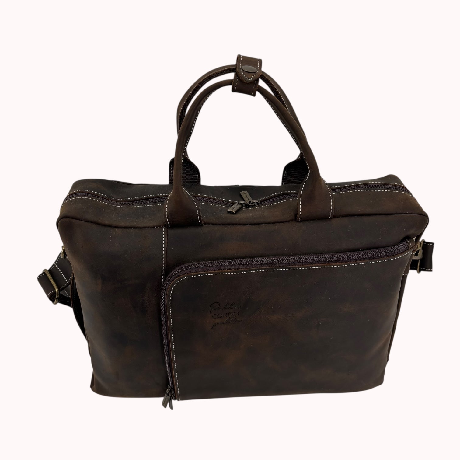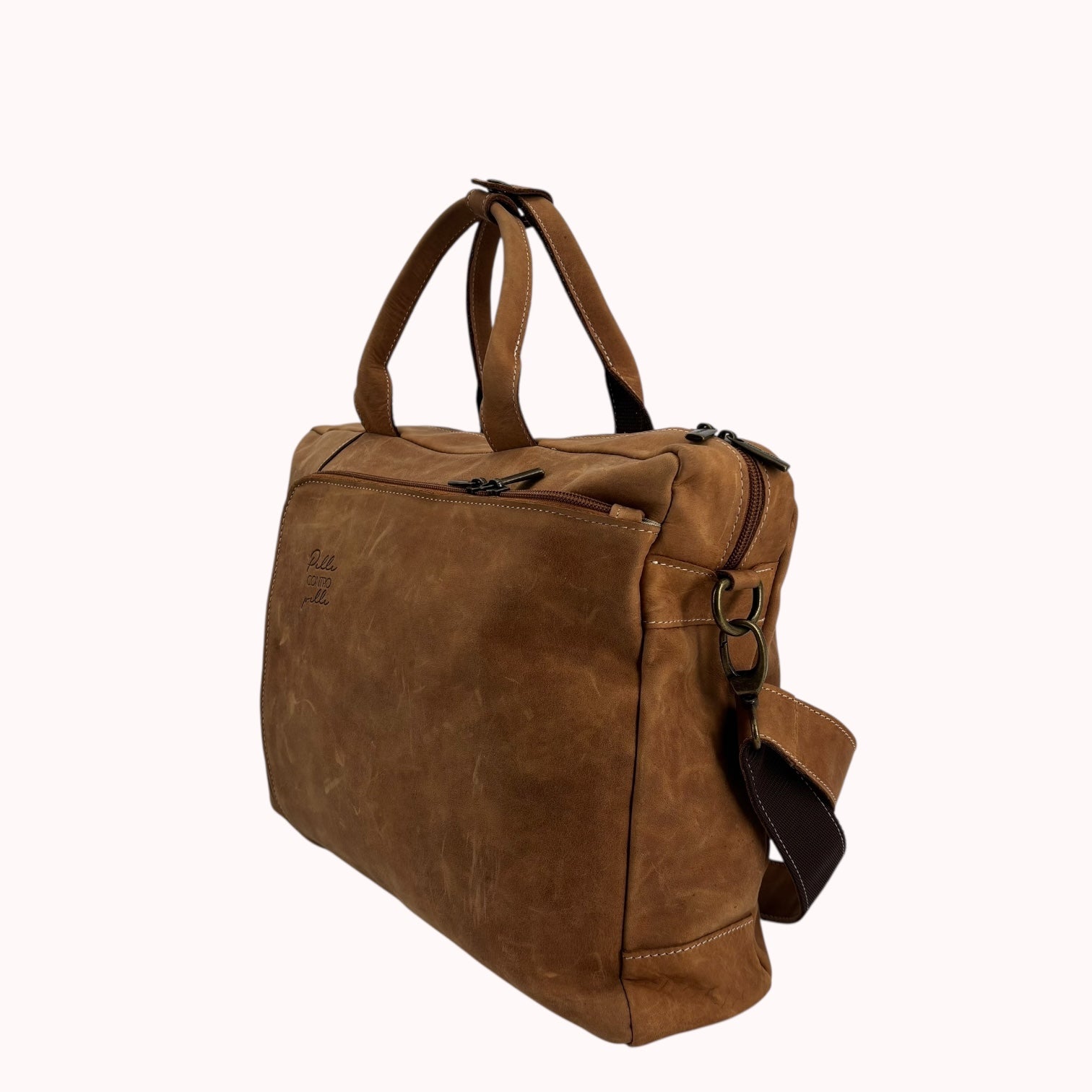 Realizzata in pregiata vera pelle ingrassata, questa cartella unisex è un vero investimento di stile: non solo è robusta e pensata per durare, ma acquisisce una patina e un fascino inconfondibile con l'uso. Più la indossi, più diventa unica.
