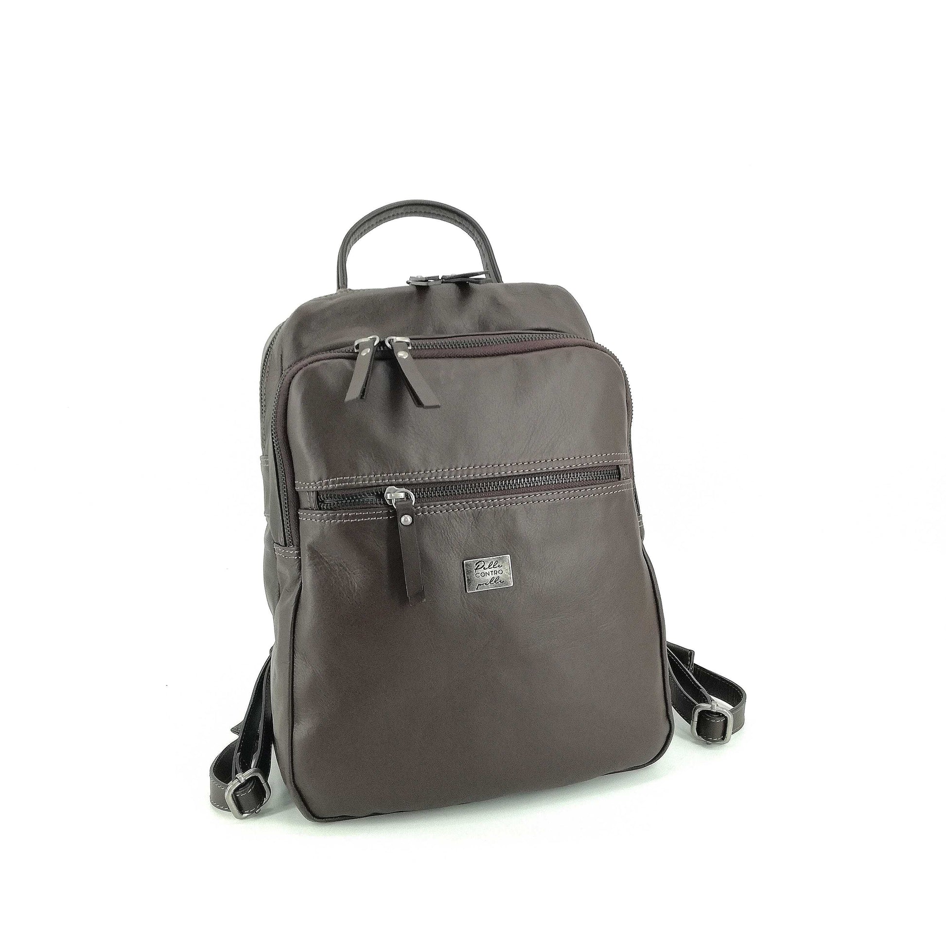 Torna alla routine con stile! Ti presentiamo Giorgio, lo zaino in morbida nappa della nostra esclusiva Linea PelleCONTROpelle. Con la sua targhetta metallica brunita e la placca di pelle logata a fuoco all'interno, è l'accessorio perfetto per affrontare il ritorno a scuola o in ufficio con un tocco di eleganza e professionalità.